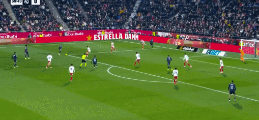 第12分钟,赫罗纳后场失误,姆巴佩小角度射门打高