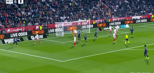 第45分钟,打破僵局,欧纳希劲射得分,皇马0-1